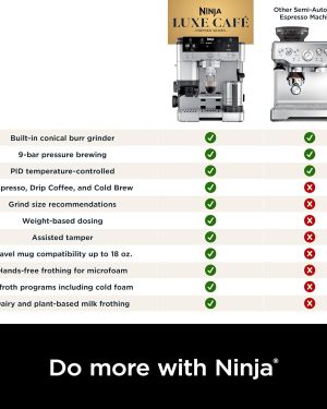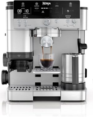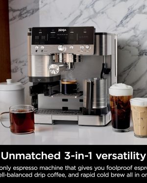 - با اسپرسوساز Ninja ES501EU نوشیدنیهایی با کیفیت کافیشاپی در خانه تهیه کنید. دارای آسیاب داخلی، فومساز شیر و قابلیت تهیه انواع قهوه.