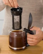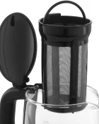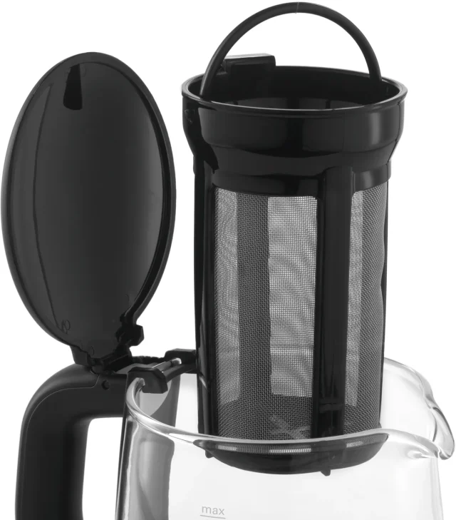 قوری شفاف، امکان کنترل فرآیند دمکشیدن چای را بهراحتی فراهم کرده و با فیلتر فلزی، مانع ورود برگهای چای به داخل لیوان میشود. - قابلیت گرمنگهدارنده اتوماتیک: