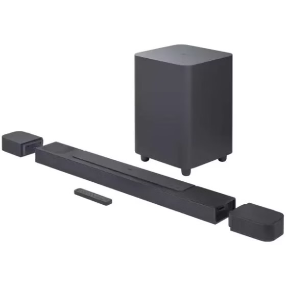 ساندبار حرفهای JBL Bar 1300 با بلندگوهای جداشونده، سابووفر قدرتمند و پشتیبانی از Dolby Atmos، صدای سینمایی فراگیر را به خانه شما میآورد.