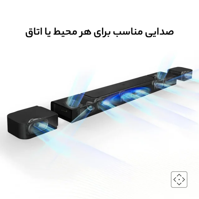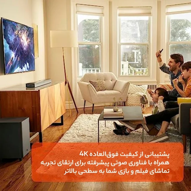 اسپیکرهای رو به سقف و پشتی، صدای کاملاً فراگیر و سینمایی تولید میکنند . - سابووفر ۱۰ اینچی بیسیم با صدای باس قدرتمند